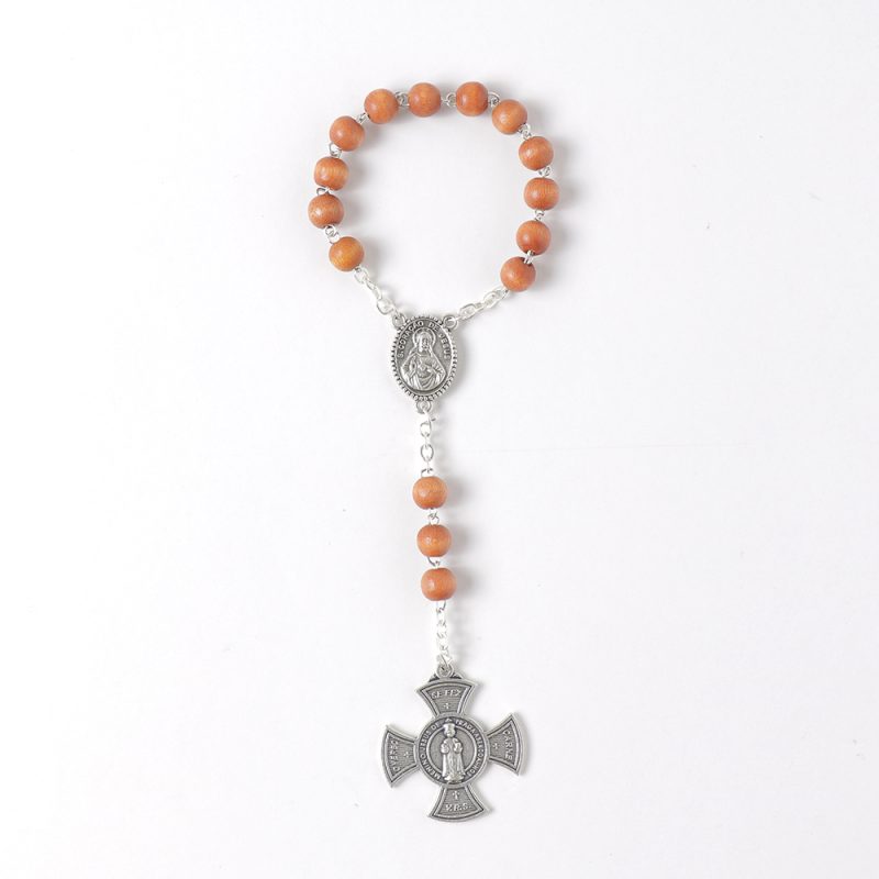 Terço castanho madeira de oliveira, 55cm. Este terço muito bonito e original tem as contas em madeira de oliveira e uma medalha da Nossa Senhora do Sameiro e da basílica no passador. Tem cruz prateada e caixinha para guardar o terço.