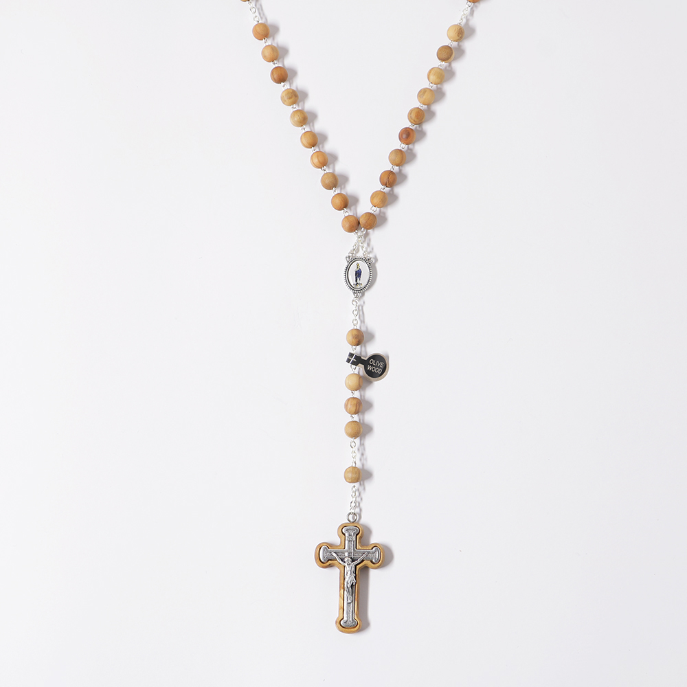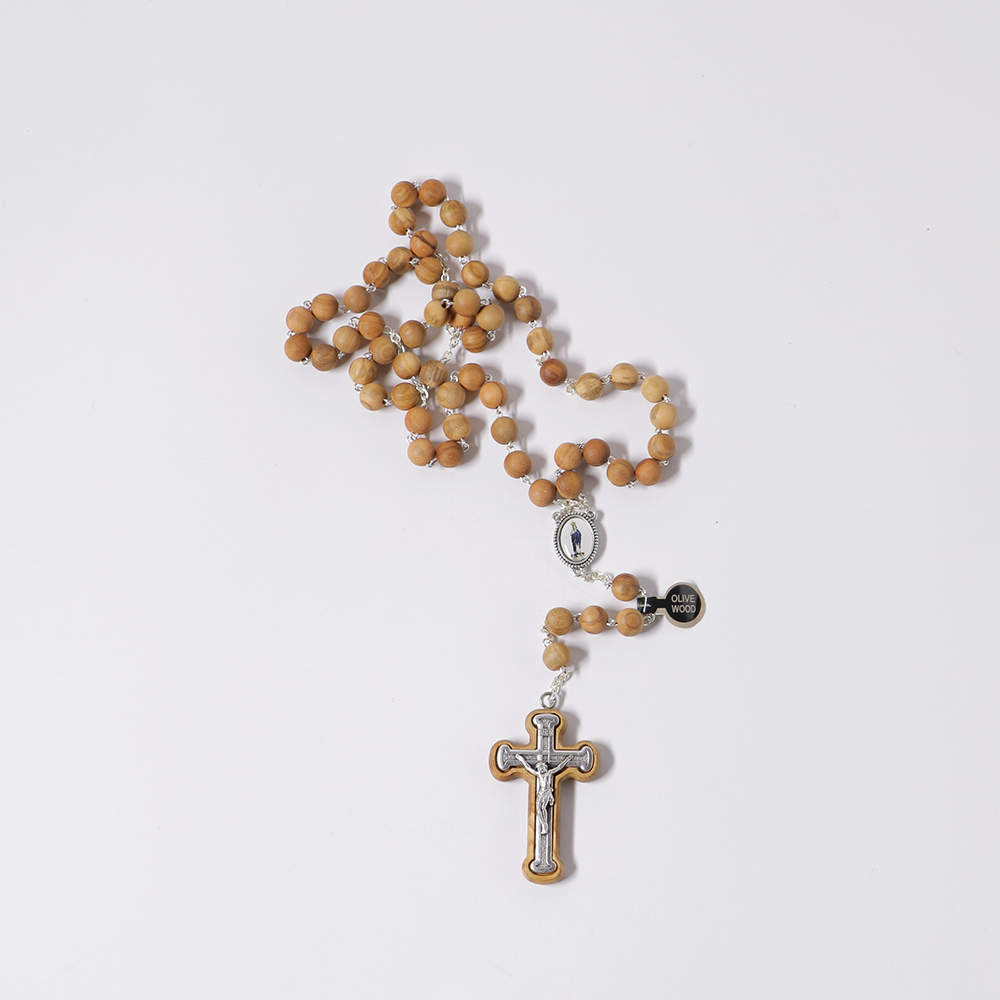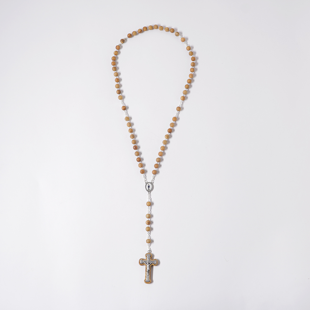 Terço castanho madeira de oliveira, 55cm. Este terço muito bonito e original tem as contas em madeira de oliveira e uma medalha da Nossa Senhora do Sameiro e da basílica no passador. Tem cruz prateada e caixinha para guardar o terço.
