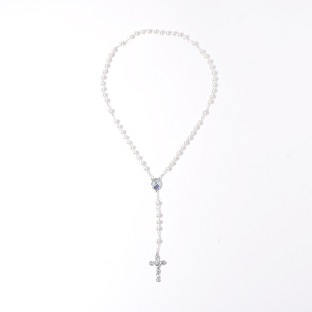 Terço com contas de pérolas creme 43cm