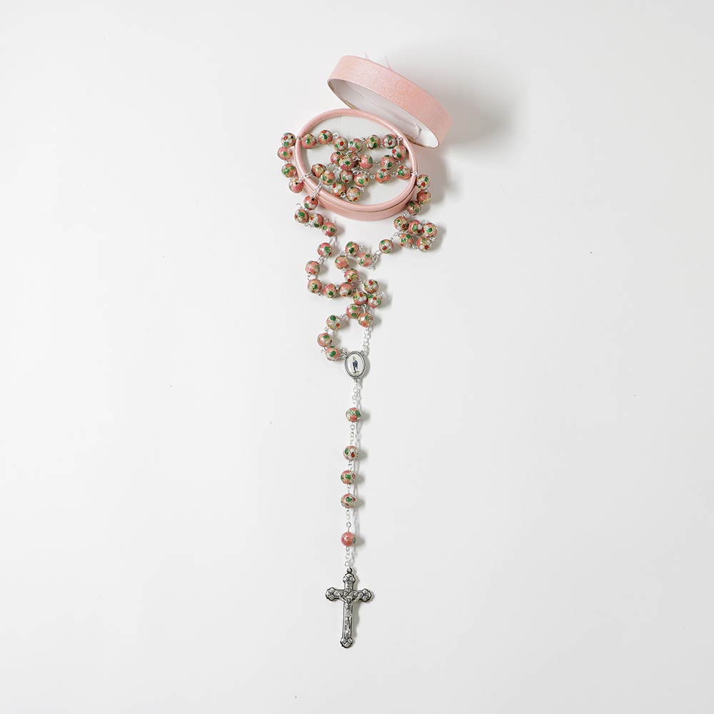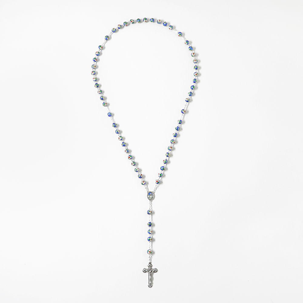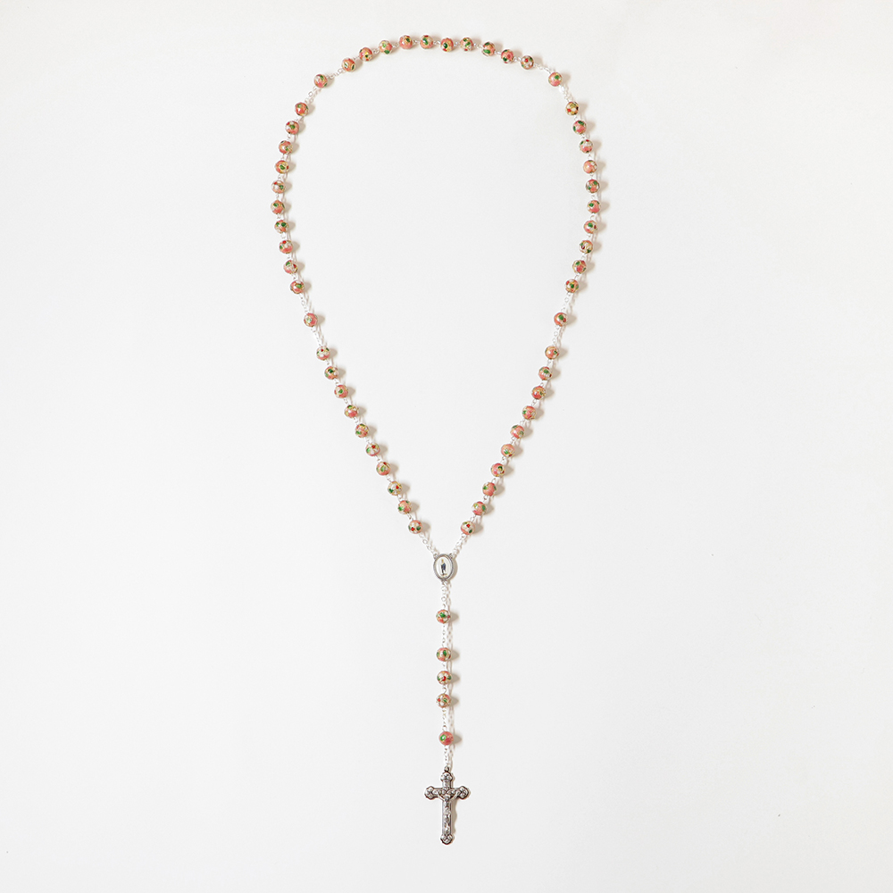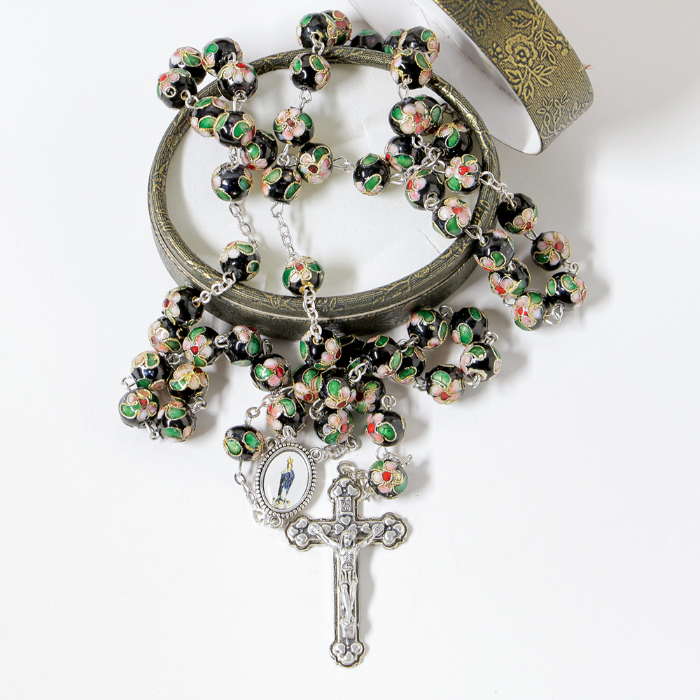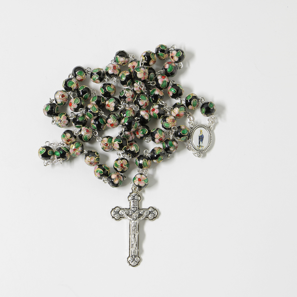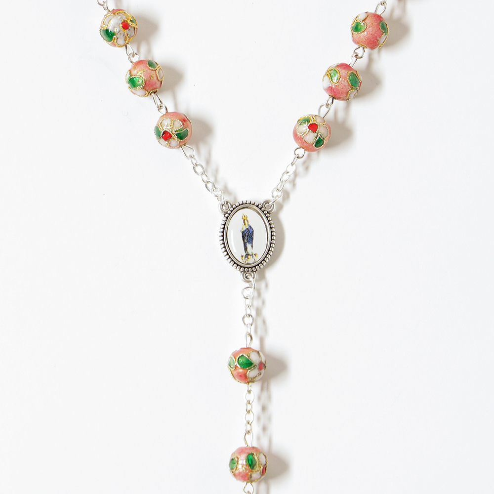 Este terço em pedra cloisonné 10mm, é muito bonito e original, tem cruz prateada e uma medalha da Nossa Senhora do Sameiro  no passador.