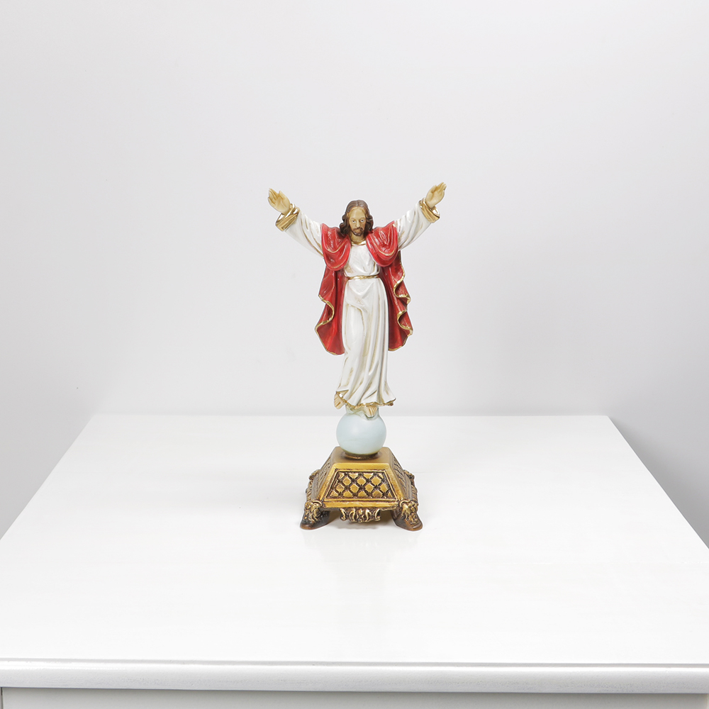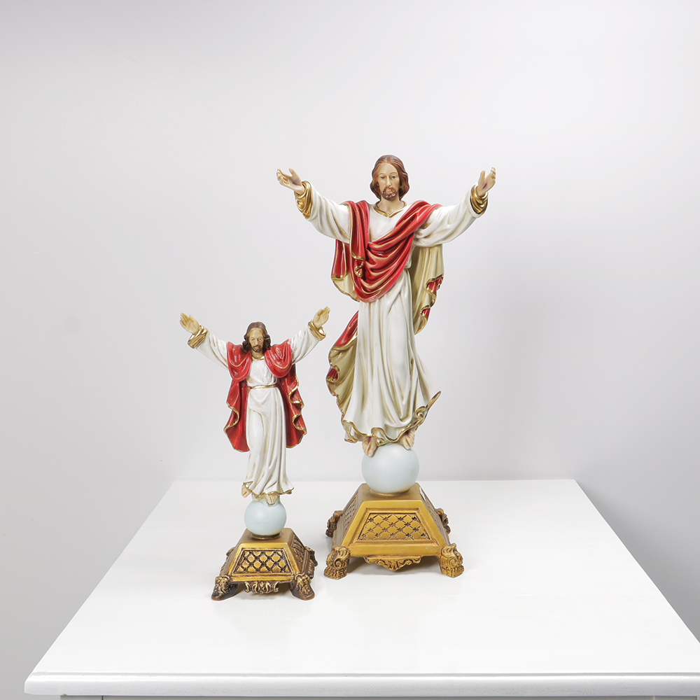 Cristo Ressuscitado, em marfinite, com base trabalhada em dourado, temos disponível no tamanho grande e pequeno.
