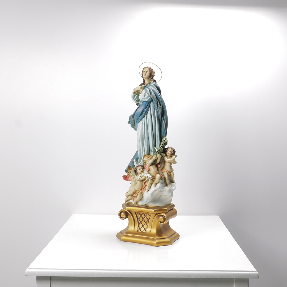 Nossa Senhora Imaculada da Conceição com 62cm de altura, em marfinite, com base trabalhada.