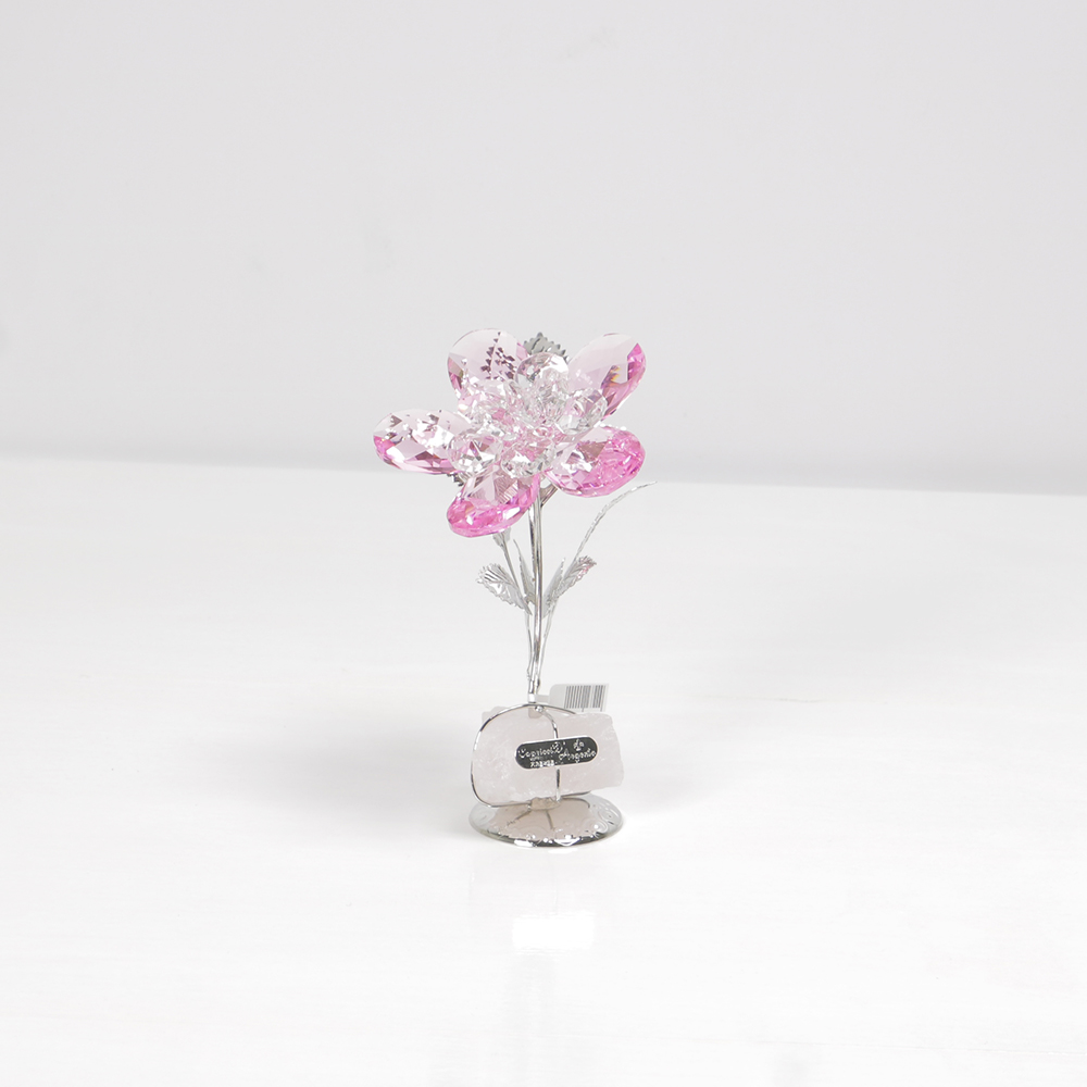 Flor em cristal com base mineral, temos nas cores rosa, azul e violeta.