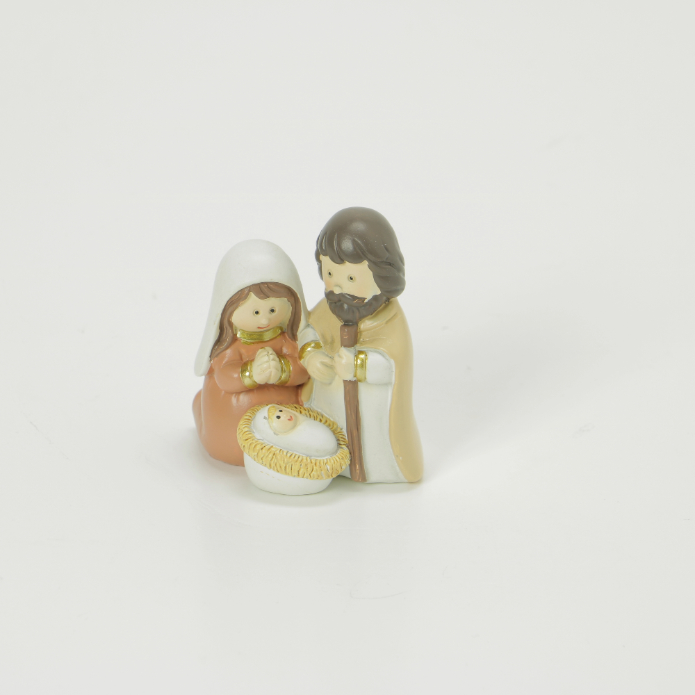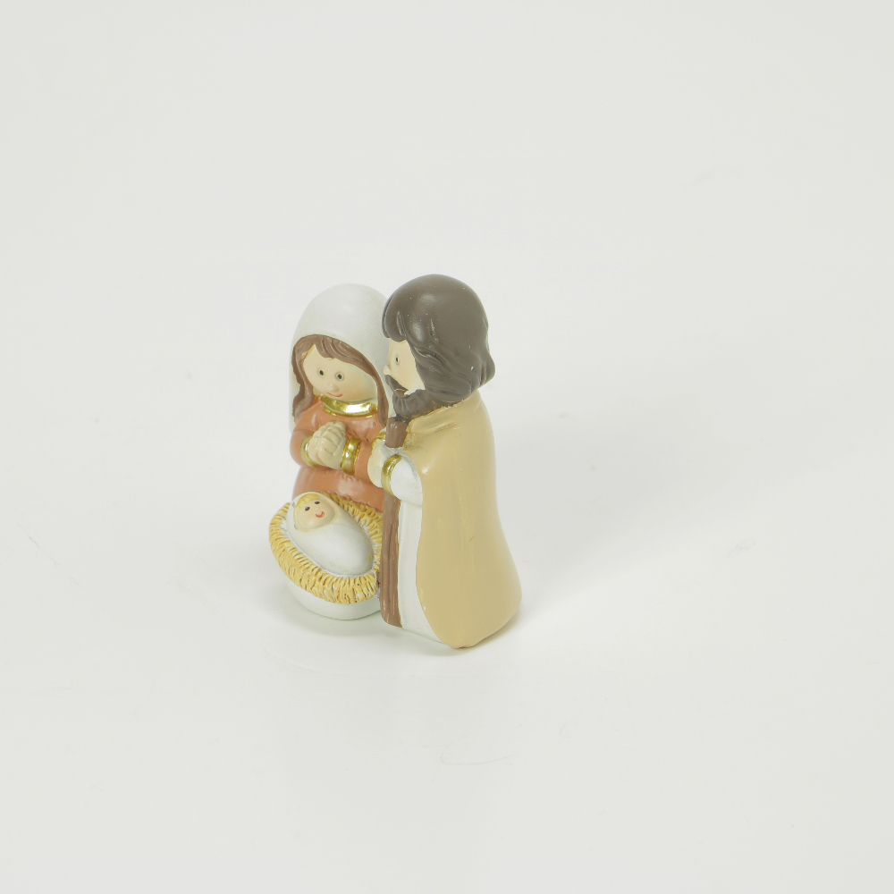 Presépio miniatura com a Sagrada Família em resina 5x7cm.