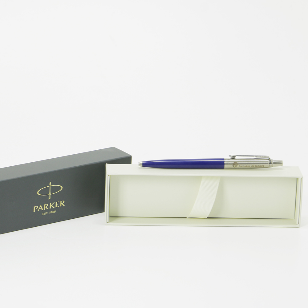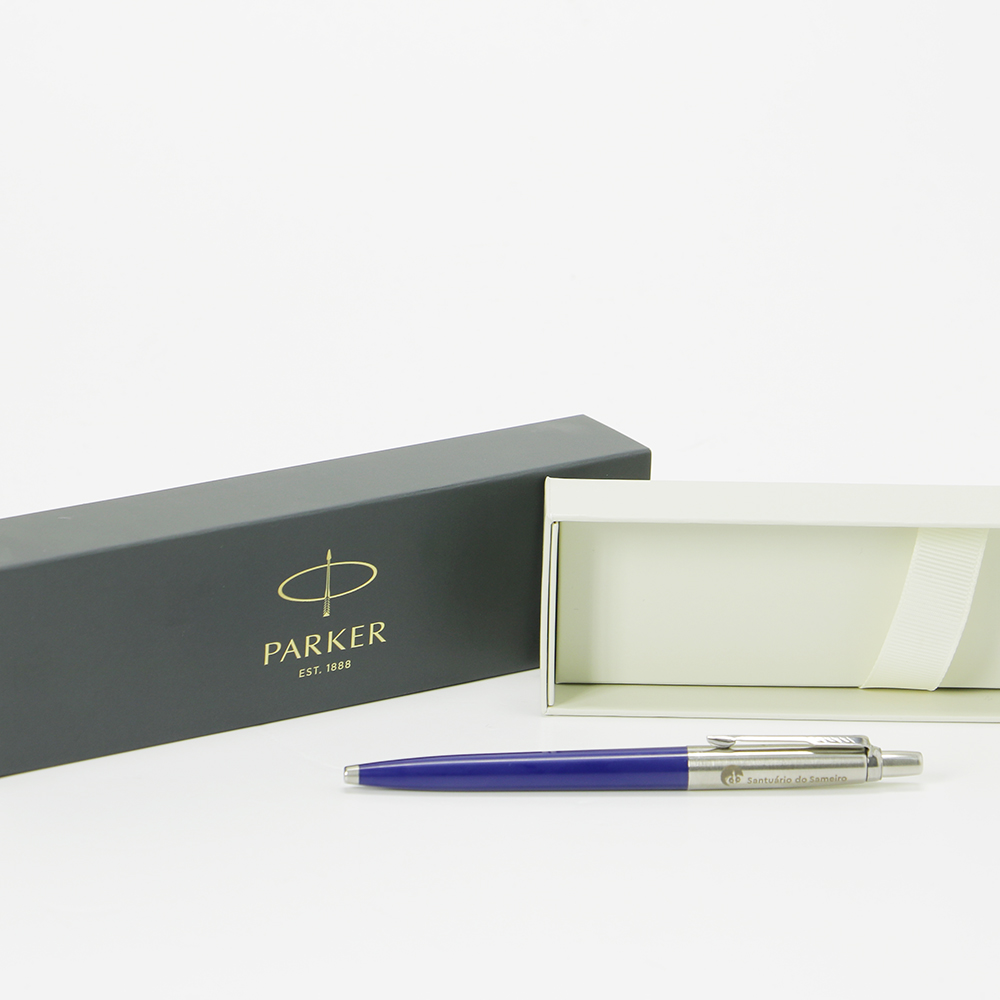 Esferográfica Parker azul, de alumínio e gravação laser, Santuário do Sameiro. Com estojo.