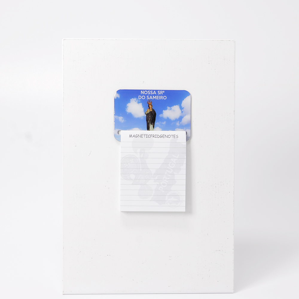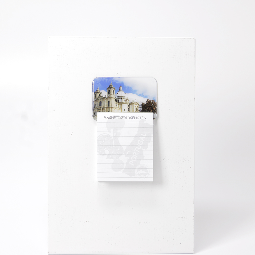 Magnético com bloco de notas com duas imagens, Nossa Senhora do Sameiro e Basílica do Santuário do Sameiro.