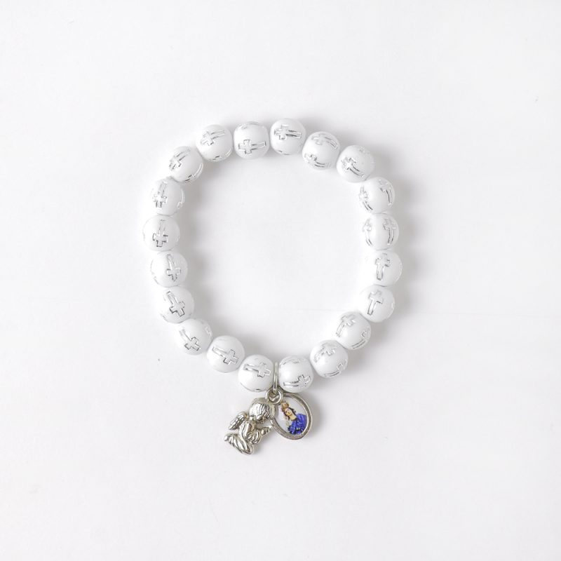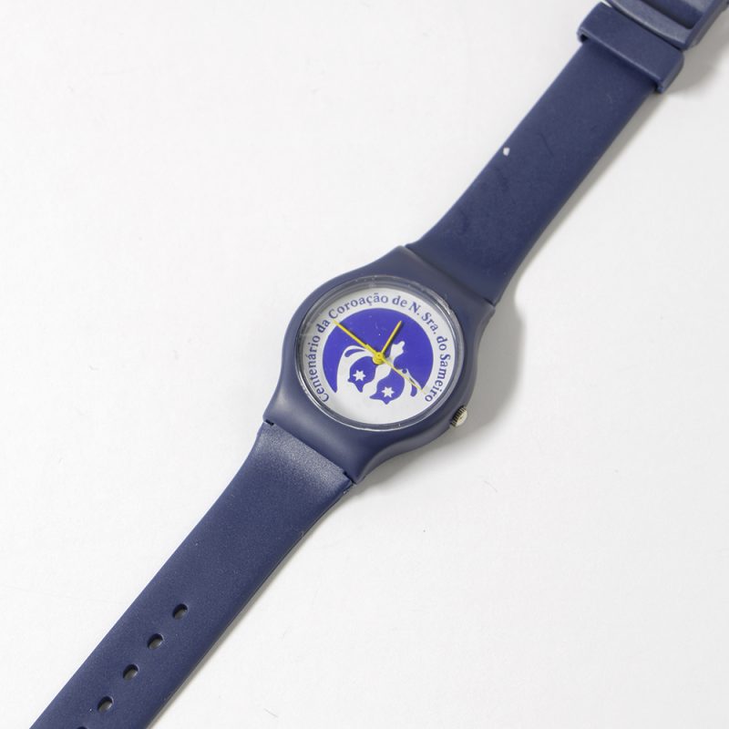 Isqueiro pequeno com imagem da Coroa da Nossa Senhora do Sameiro, de cor branca.