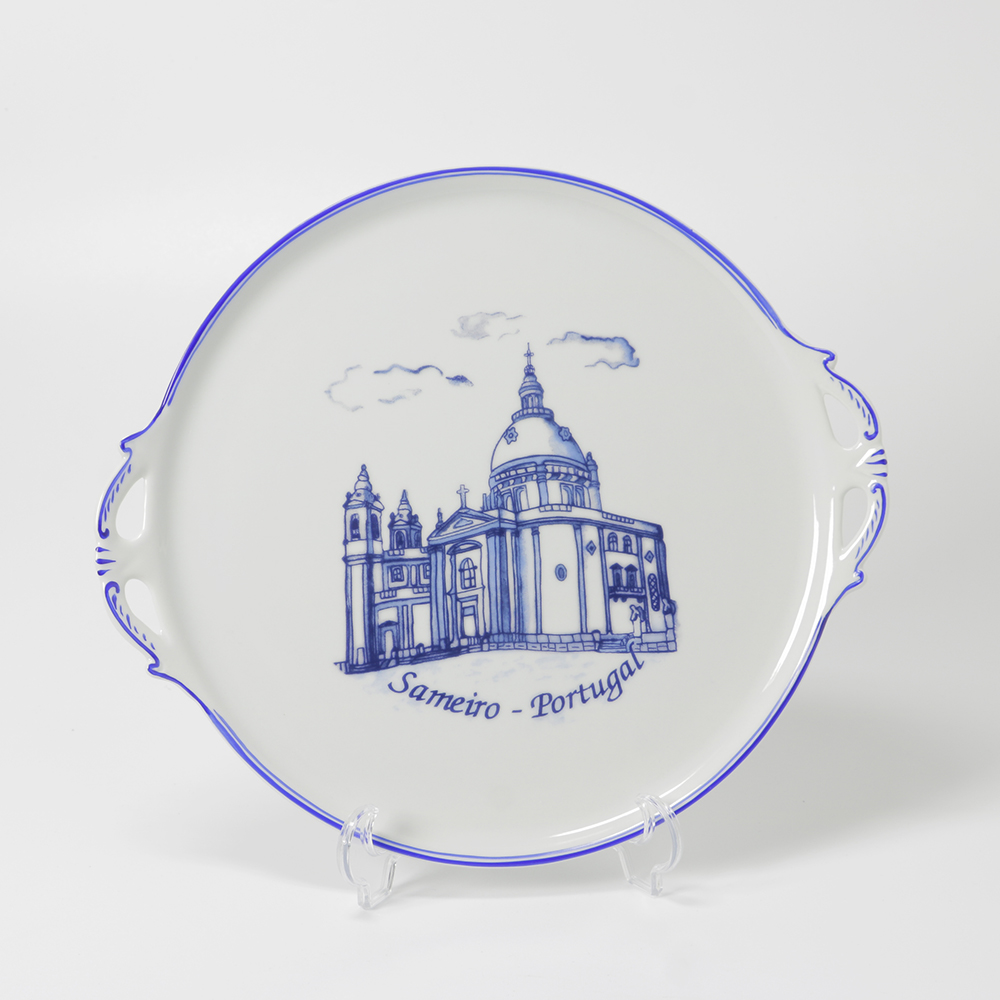 Prato em forma de Bandeja com a Basílica do Santuário do Sameiro. Loiça de qualidade, pintada à Mão.